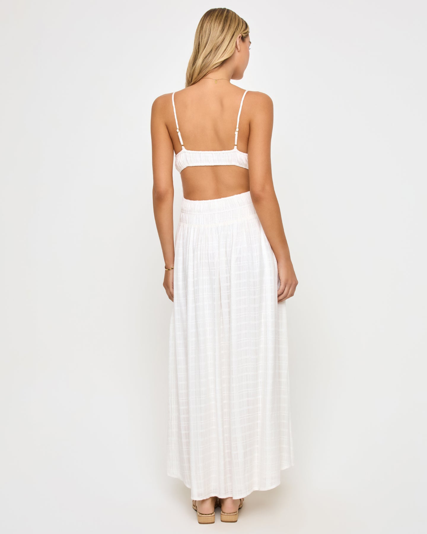 From sun-drenched days to picture-perfect nights, the cream-colored Tala Maxi Dress is your go-to for effortless vacation style. Designed to flatter and flow, this lightweight dress features a tiered elastic waist, flirty bow detail at the front, and adjustable spaghetti straps for the perfect fit. A subtle back cutout adds just the right amount of allure, making it perfect for daytime adventures or a romantic evening out.