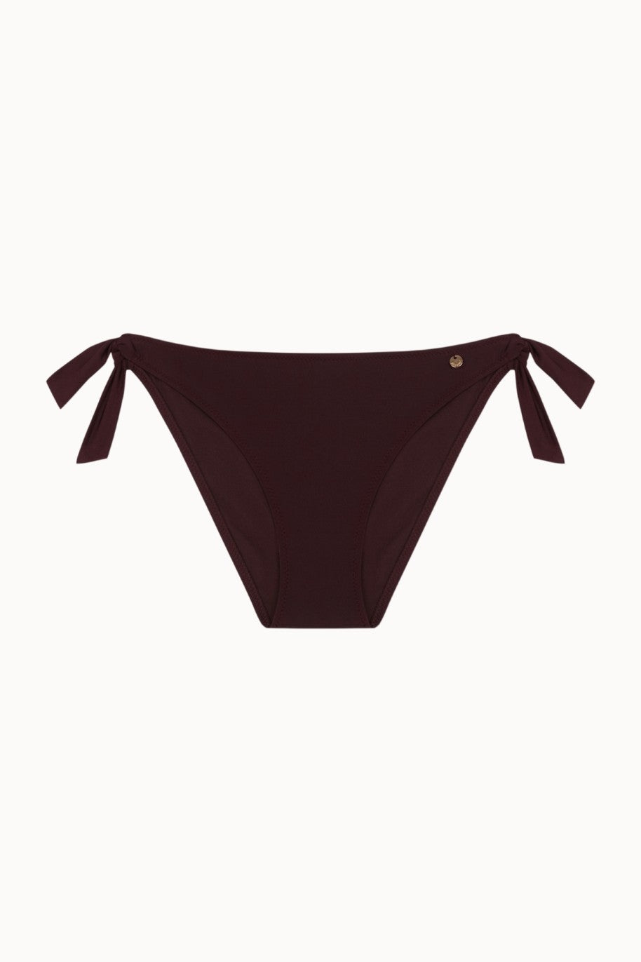 Crafted in smooth chocolate brown satin made from 100% recycled fabric and lined with certified recycled polyamide, it’s a beautifully sustainable swimwear staple.