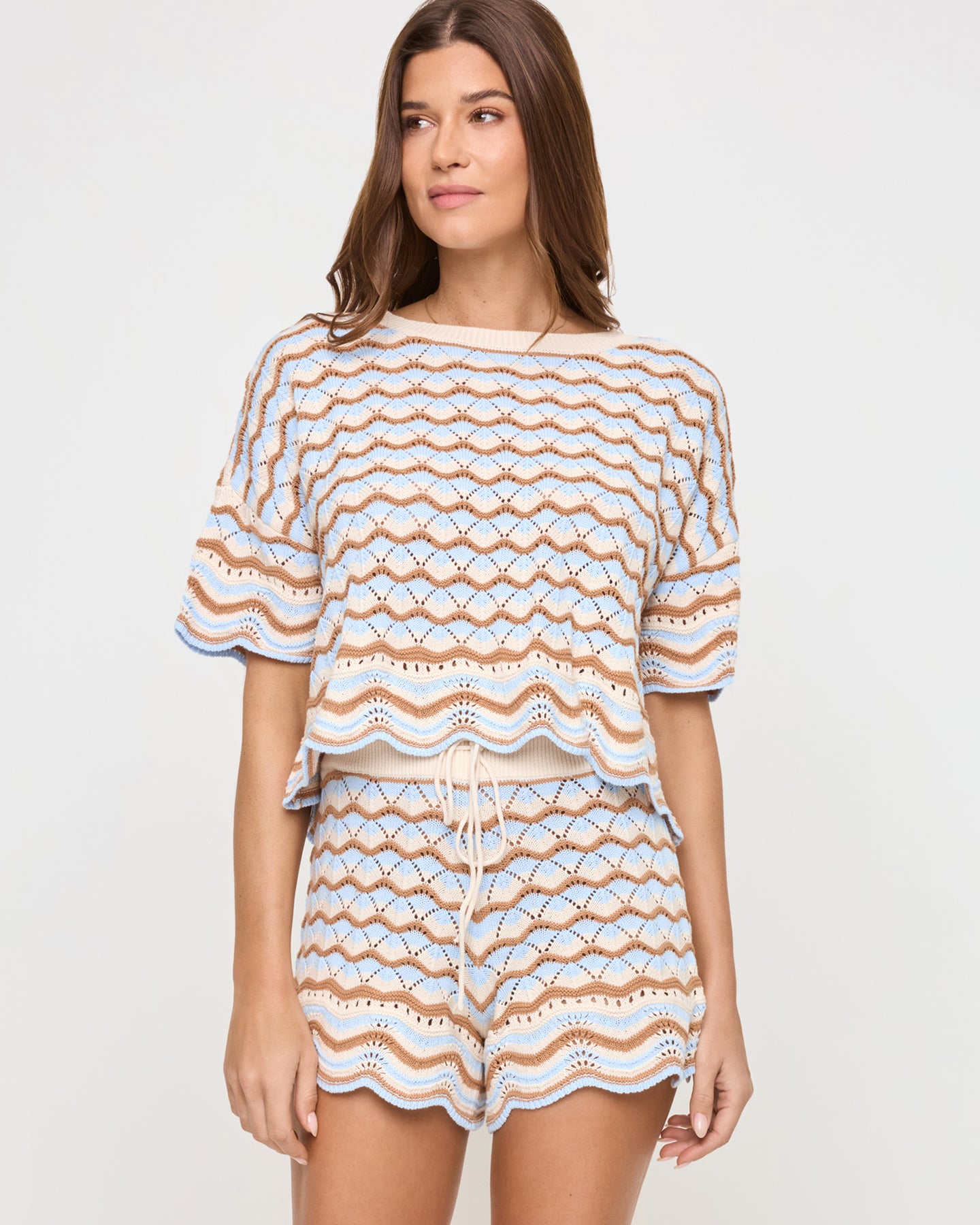 Chase the sun in style with the Sun Chaser Shorts — the ultimate beach-to-brunch essential. Designed in a vibrant crochet knit, these high-waisted shorts feature a flattering scalloped hem and an adjustable drawstring waist for a comfy, customizable fit. Whether paired with your fave bikini top or the matching crop top, they’re made for effortless summer days.